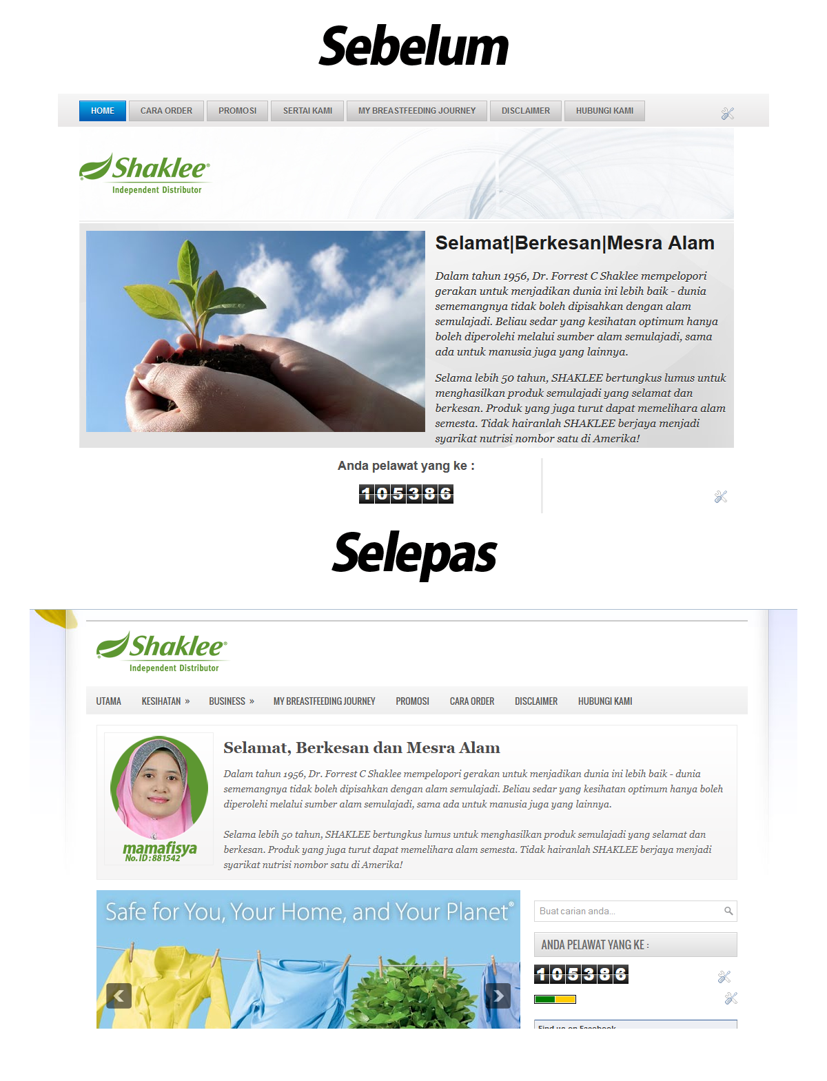 Berikut adalah paparan blog sebelum dan selepas milik Puan Aisya Amir